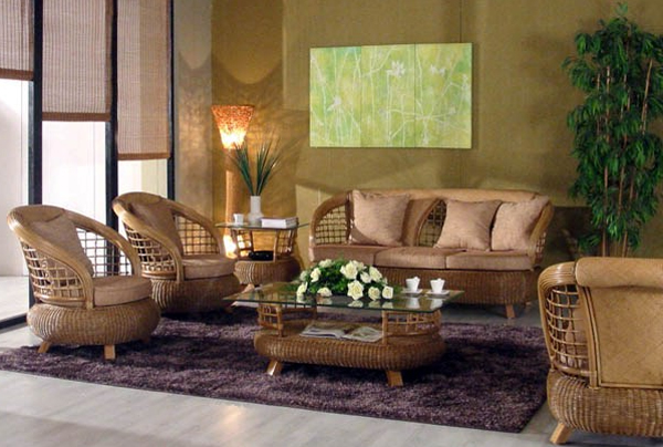 Примечательно, что выпускаются плетеные пуфы, диваны и кресла настолько необычного дизайна, что с их помощью можно создать суперсовременный интерьер, при этом практически не используя вещей из искусственных материалов.