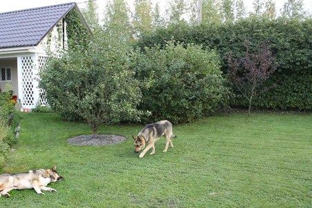 Хозяйственный двор от остальной части участка я огородила «живой стенкой» из черноплодной рябины.