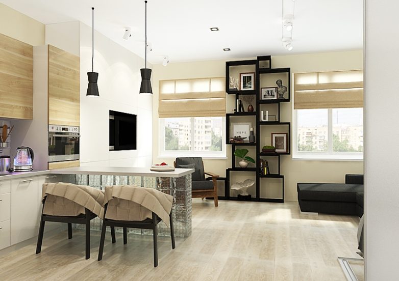 Основная задача – в маленькой двухкомнатной квартире создать интерьер, подходящий как для повседневной жизни, так и для вечеринок с друзьями.