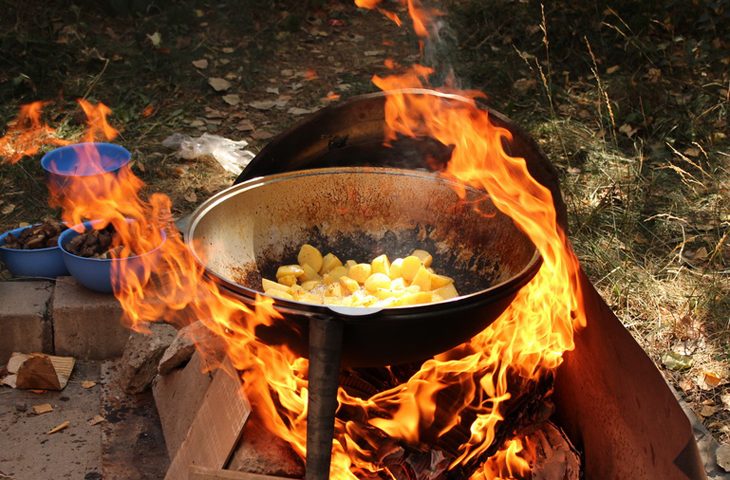Кочевники, начиная с древних монголов, совершая свои эпохальные завоевания, которые охватывали огромные территории, имели острую потребность в организации питания в условиях постоянного похода. В еде они не нуждались — вместе с ордами передвигались огромные стада овец, а растительную пищу возделывали на захваченных землях. Основой рациона кочевников было мясо и мука — прообраз бешбармака. Считается, что именно тогда появились первые казаны — толстостенные полукруглые кастрюли, которые возили с собой и готовили в них еду для большого количества людей. Казаны могли приобретать исполинские размеры, но независимо от габаритов, они требовали простого очага в виде ямы в земле, которую было несложно выкопать.