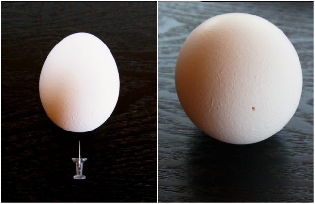 Перед варкой проткните скорлупу яйца канцелярской кнопкой, чтобы потом можно было легко его очистить.