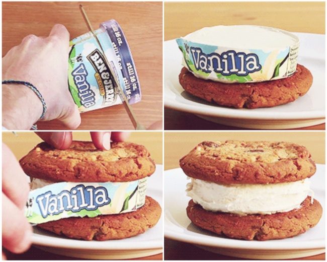 Горячий острый нож отлично справится с приготовлением бутербродов из мороженого.