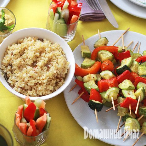 Знаете ли вы, что овощи тоже нуждаются в маринаде? Да-да, для этого лучше всего подходит оливковое масло, ароматные травы и чеснок. Овощные шашлычки хороши в пост, это отличная горячая закуска, которую можно подавать с отварным рисом или кус-кусом и конечно же с соусом. К овощам лучше всего подходит йогуртовый.