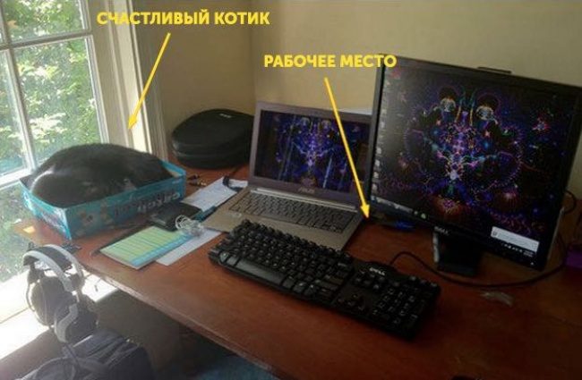 Каждый человек, который проводит дома время за компьютером, знает, как кошки любят полежать на клавиатуре. Чтобы найти компромисс, достаточно поставить рядом коробку. И котик будет счастлив, и вы сможете спокойно работать!