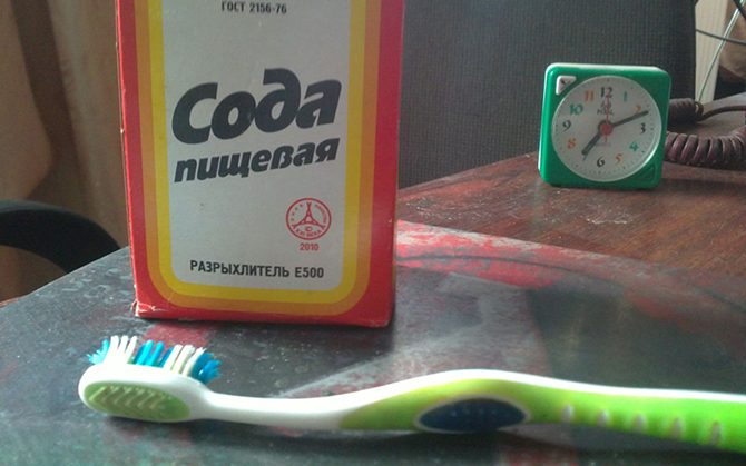 Вернемся во времена, когда вместо зубных паст пользовались зубными порошками. Рассыпьте небольшое количество соды на любой поверхности и обмакните в горстке зубную щетку. Тщательно почистите зубы и прополощите рот водой.