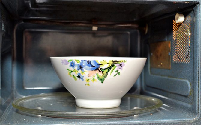 Со временем и микроволновка начинает пахнуть. Избавить ее от каравана всех запахов на свете можно, разведя в тарелке с водой две столовые ложки соды, поместив тарелку в печь и включив на три минуты. После этого протрите печь изнутри губкой или тряпкой.