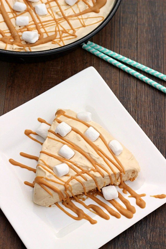 Измельчить крекер руками. Смешать его с растопленным маслом. Выложить эту смесь в форму, распределить ровно по поверхности и убрать на час в холодильник. В большой миске смешать сливочный сыр, сгущеное молоко, арахисовое масло и сахарную пудру. Хорошенько взбить. Добавить взбитые сливки и тщательно перемешать. Выложить смесь на корж, убрать в холодильник на 3 часа или на ночь. Перед подачей сбрызнуть торт растопленным арахисовым маслом и украсить маршмеллоу.