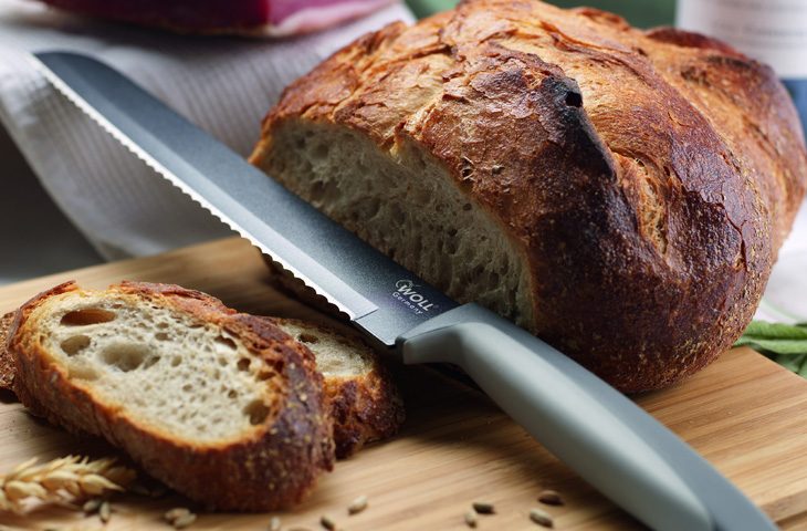 Подчас для того, чтобы аккуратно отрезать зубчатым ножом ломтик батона, хватает одного легкого движения. Возможно, этот навык придет не сразу, но в будущем ваши старания себя оправдают.