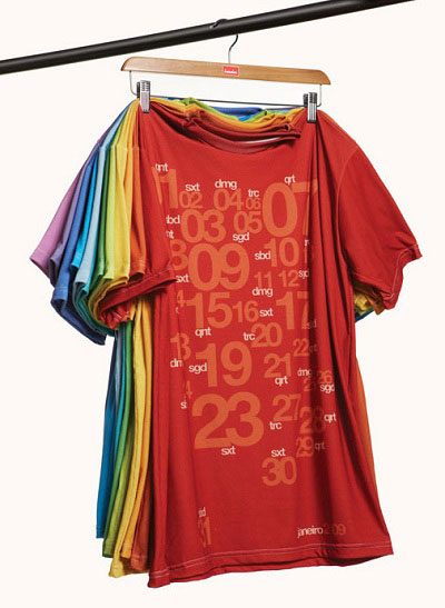 Бразильское агентство MatosGrey придумало для магазина одежды Leader футболочный календарь, который стал частью модной линейки одежды магазина. На каждый месяц в этом календаре приходится новая футболка с оригинальным изображением дат и дней недели.