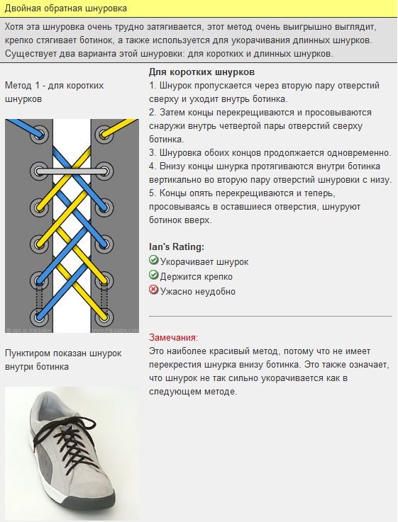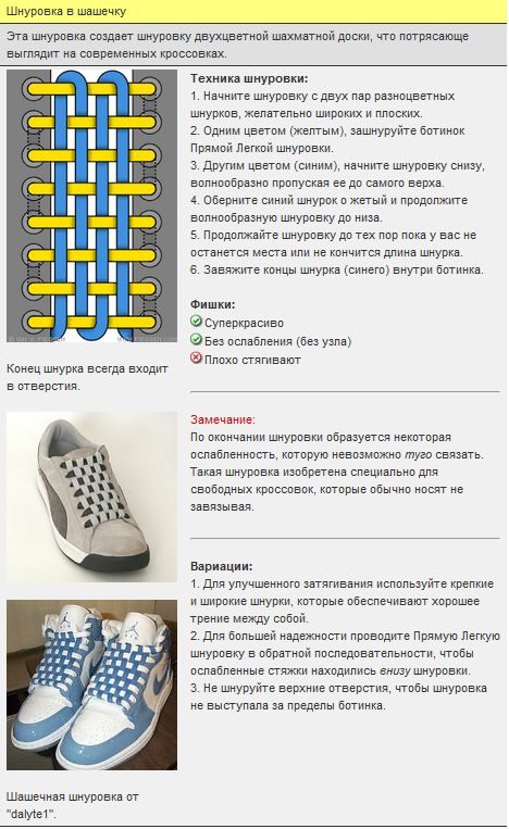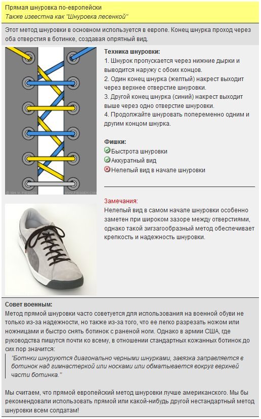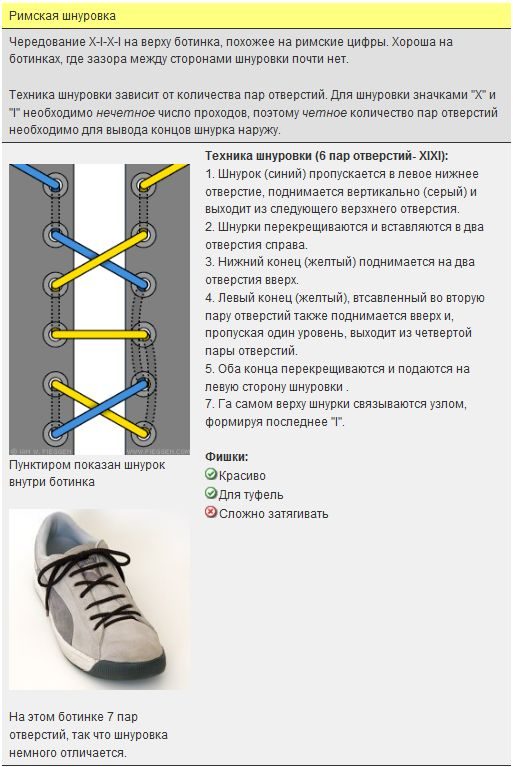 Люба спасибо за интересную тему. Никогда не предполагала, что так много техники шнуровки обуви.