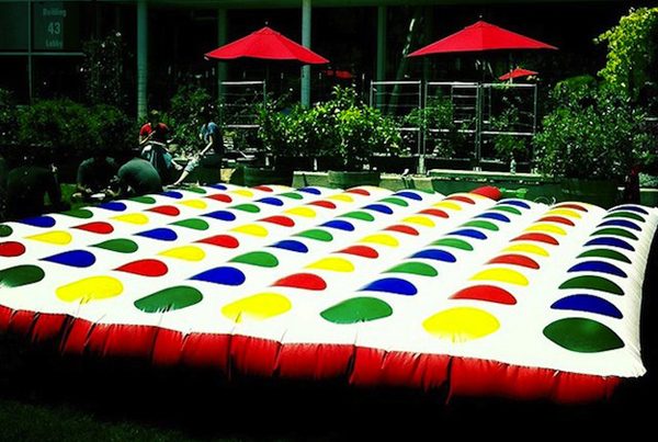 Какой же отдых на свежем воздухе без активных игр, особенно если есть дети? Впрочем, взрослые тоже с удовольствием играют в Твистер. О маленьких версиях в саду можно забыть, понадобится большая надувная, в которую смогут играть до десяти человек. Общий вес, который способна выиграть платформа – 680 кг.