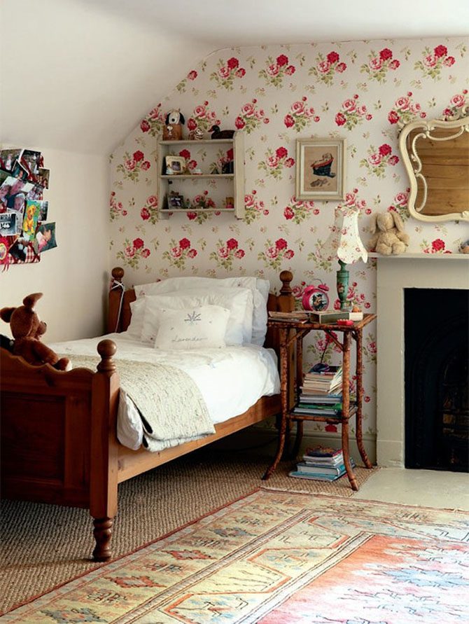 Для одной из стен выберите обои с цветочным принтом, остальные пусть будут белыми. Так вы сохраните целостность интерьера, оставив светлые стены для декорирования.