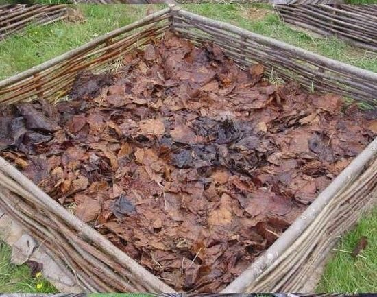 Следом неплохо бы уложить слой опавших листьев, в идеале — сантиметров 15 толщиной. Но идеал чаще всего недостижим (если только у вас рядом с участком не растут взрослые лиственные деревья, способные обеспечить ценным сырьем в избытке)ю Листья утрамбовывают и поливают, а сверху кладут перепревший навоз или зрелый компост.