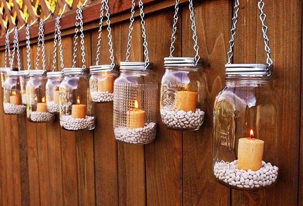 Даже забор может стать элегантным, если вы украсите его таким красивым декором. Главное — позаботьтесь о том, чтобы пламя свечи никак не могло коснуться ограждения.