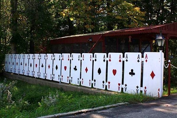 Любителям произведения Льюиса Кэрролла «Алиса в стране чудес» наверняка понравится забор в виде игральных карт.
