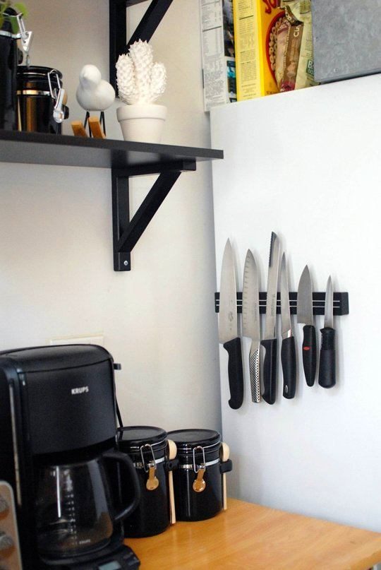 4. Для хранения ножей используйте магнитный держатель. Его можно разместить в любом удобном для вас месте, как вертикально, так и горизонтально.