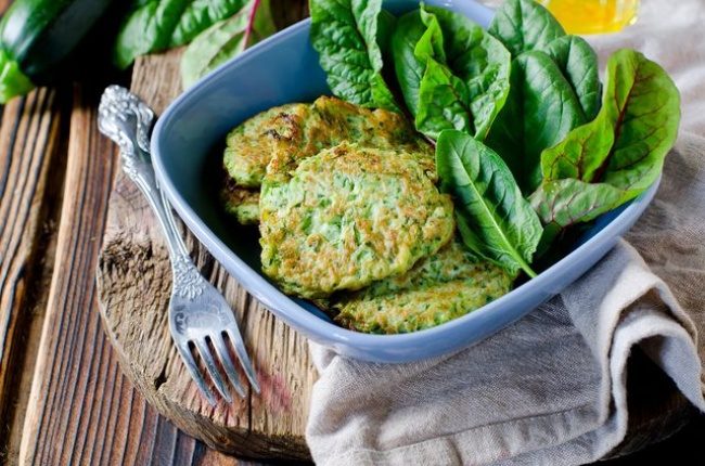Эту массу соединяем с зеленью и луком — должно получиться тесто с консистенцией сметаны. Солим его по вкусу, формируем оладьи и жарим до румяной корочки.