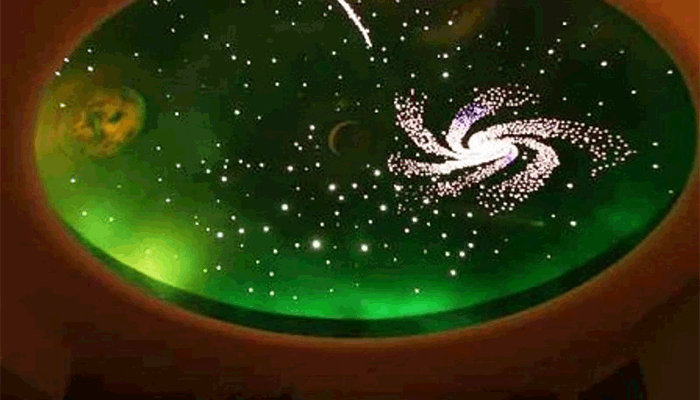 Особенно эффектно такой декор интерьера смотрится в больших залах с высокими потолками, но и небольшая комната преобразиться с таким небом на потолке.