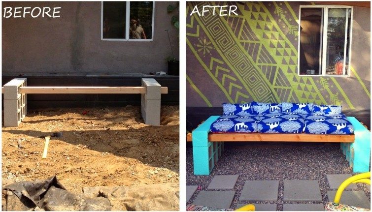 4. Уютная софа из деревянных брусков и шлакоблоков