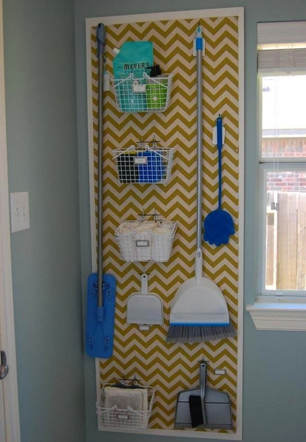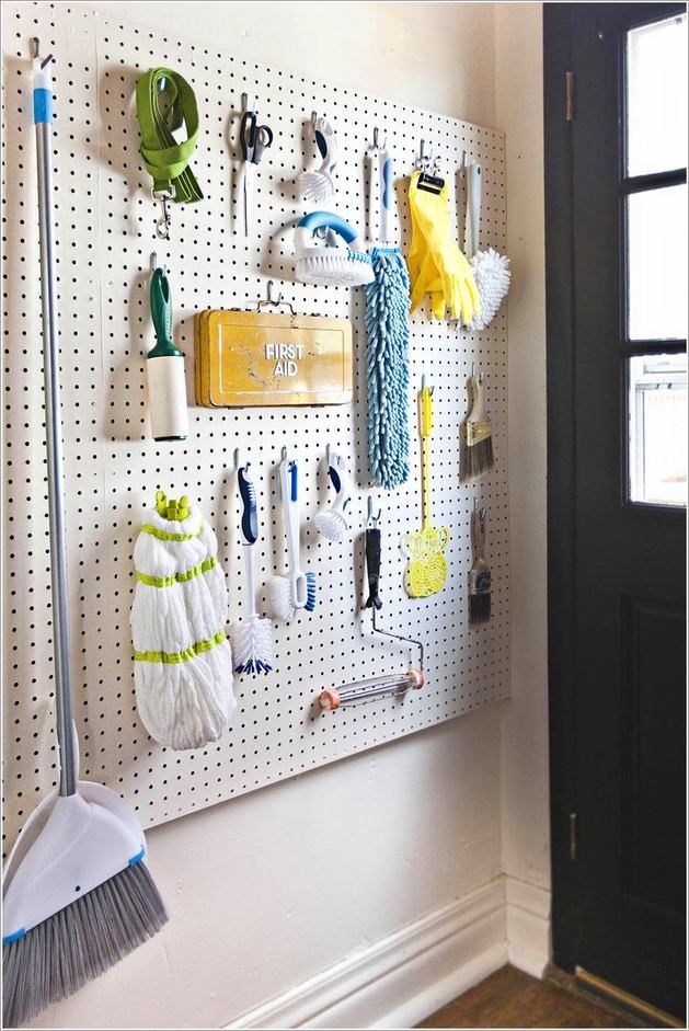 11. Не обязательно прятать швабру или веник. Вы можете поместить их на такой удобной доске, которую легко найти в любом строительном магазине.