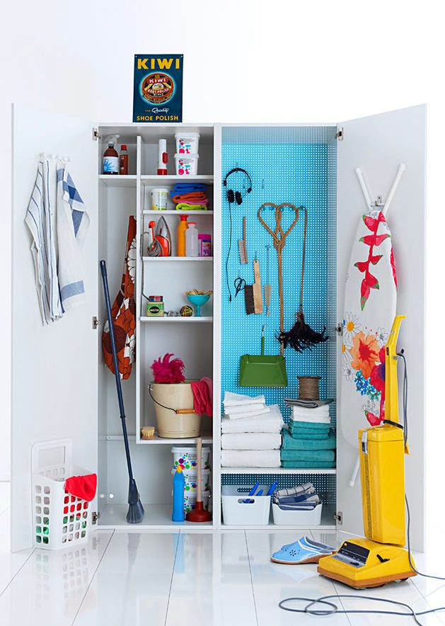 19. Цветное настроение. Оформляйте места для хранения инструментов для уборки не только функционально и аккуратно, но и красиво.