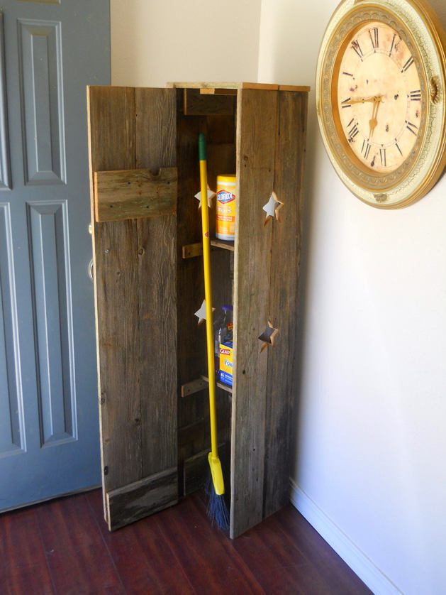 13. Используйте специальные крепления для ручек инвентаря. Так вы сможете разместить их на двери шкафчика.