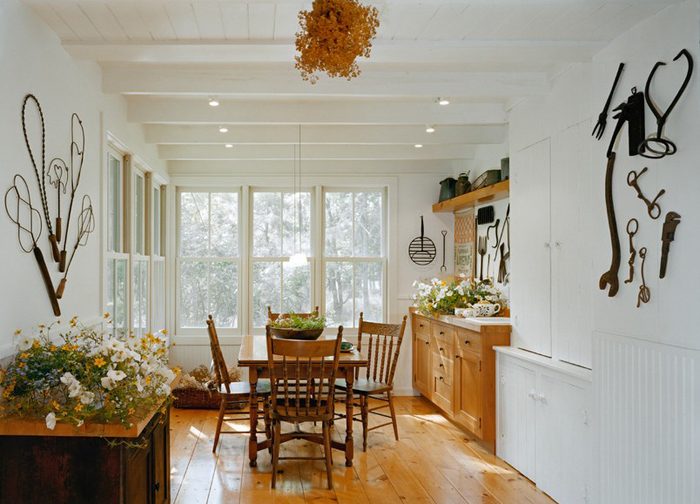 Лейки, живые растения и мебель в деревенском стиле создадут в доме атмосферу как в настоящей оранжерее с массой пышной зелени и благоухающих цветов.