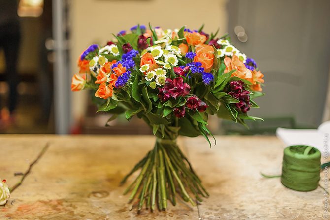 6. Проволока допустима только на герберах из-за их полого и хрупкого стебля. На других цветах ее не должно быть никогда.