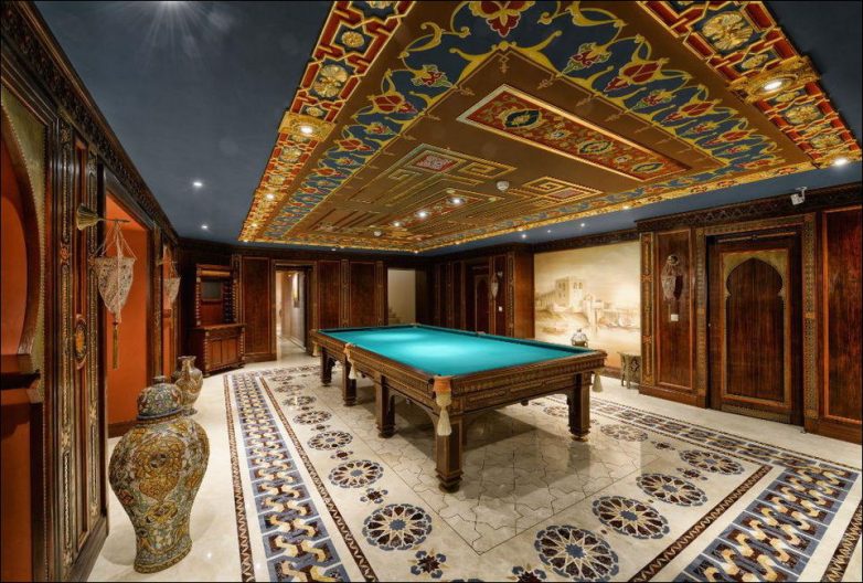 Стеновые панели в кабинете, в бильярдной и в библиотеке изготовлены из массива дуба и красного дерева. Дом полностью меблировн: часть мебели изготовлена на заказ, часть — приобретена в Европе, в мастерских краснодеревщиков.