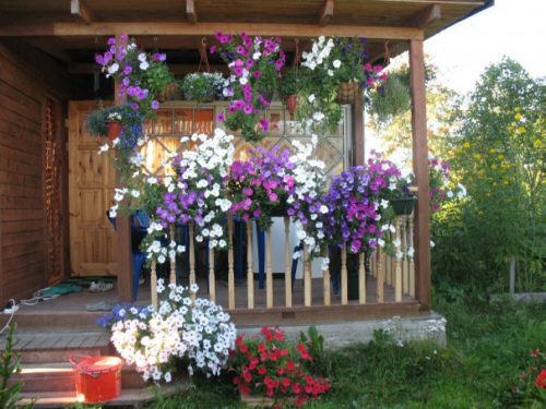 Ампельная петуния шикарно смотрится в кашпо и позволяет украсить практически любое место яркими водопадами благоухающих цветов. Петуния в кашпо будет уместна на балконе, над крыльцом, на столбах, в составе какой-либо сложной цветочной композиции – «территория» выращивания ограничивается только фантазией хозяев: пенные шапки петунии могут украсить практически любое место.