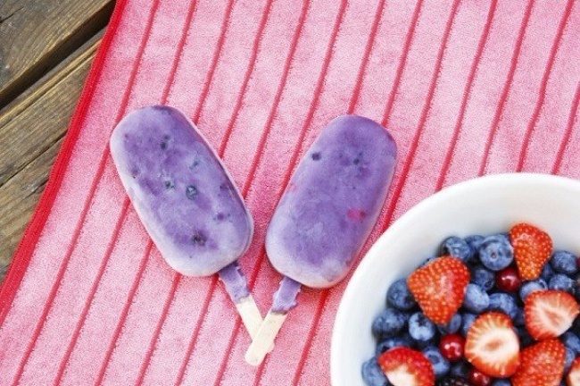 Это мороженое делается по принципу «чем больше, тем лучше». Смешайте в блендере ананасовый сок, чернику, бананы, клубнику и йогурт. Добавьте в полученную смесь ягоды черники и клубники, а затем залейте смесь в формы. Вкус изумительный.