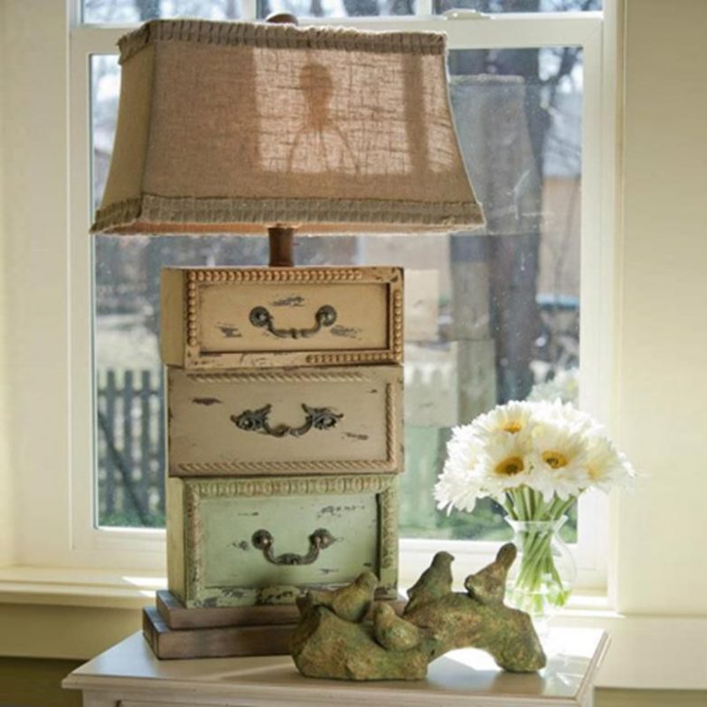 7. Для создания лампы в деревенском стиле, поставьте несколько маленьких ящиков друг на друга.