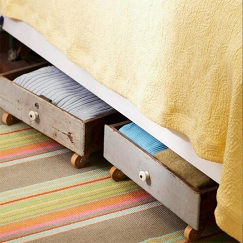 12. Сделайте удобные ящички на колесиках для хранения под кроватью.