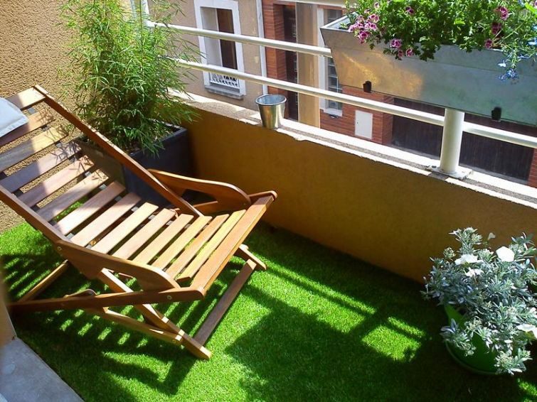 Если вы хотите быть ближе к природе, то постелите на пол искусственный газон.