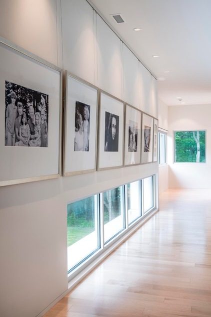 На рельс при помощи штатных креплений фиксируется трос с крючком для фотополотна. Преимущество подвесной системы в том, что вы можете свободно перемещать картины вдоль стены, а также регулировать высоту подвеса, создавая необходимый композиционный эффект.