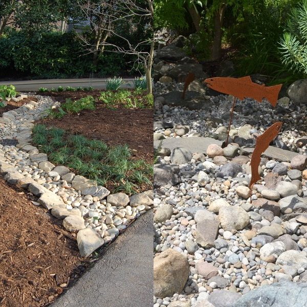 Далее на фото показано, как может выглядеть сухой ручей, созданный своими руками по приведенным в этой статье рекомендациям: