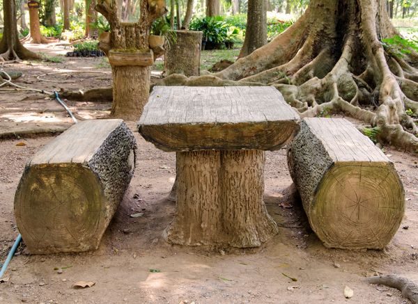 В самом деле, если есть под рукой бревна, которые реально перенести на нужное место, подобный комплект садовой мебели сооружается очень быстро. Затраты — практически нулевые, а прослужит он достаточно долго. На полянке под старыми деревьями будет смотреться замечательно, по-моему. Как думаете?