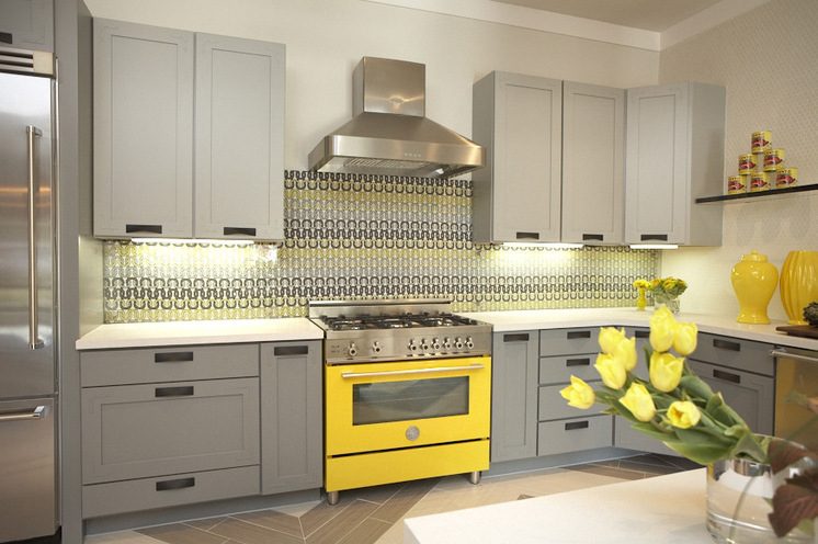 Идея: Вовсе не обязательно покрывать грифельной краской весь фартук: комбинация с белоснежной кафельной плиткой тоже смотрится выигрышно.