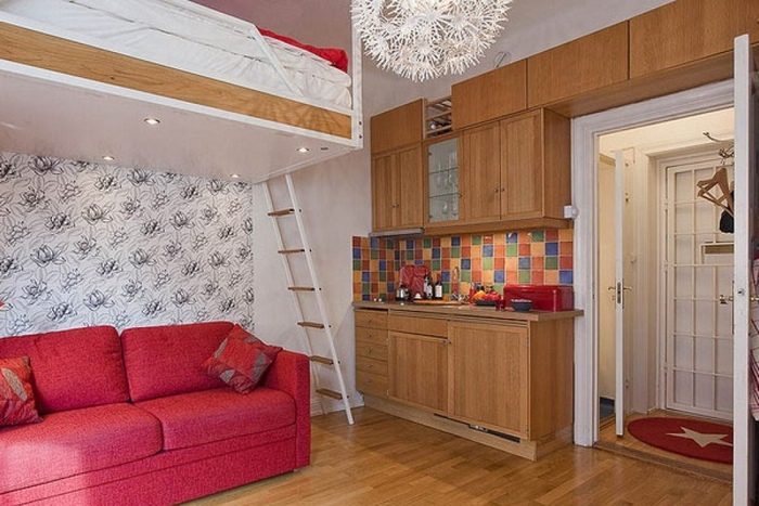 отличная идея для малогабаритки. Только видно, что не наше. У нас в среднем потолки 2,60, куда там второй ярус. А там где 3,00 — 4,00 малогабариток нет. Просто у нас нет среднего класса