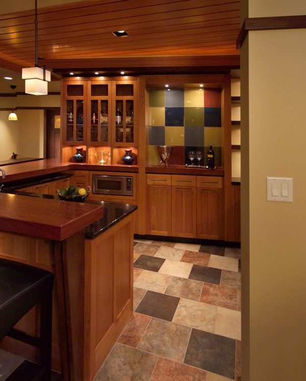 Если иногда хочется выпить что-нибудь не прерывая наслаждения любимой книгой, почему бы не устроить небольшой бар за подвижной книжной полкой в жилой комнате.