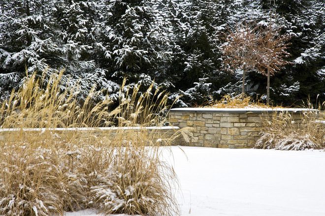 Большинство многолетников, а также все злаки прекрасно выглядят в осенне-зимний период. Многие из них имеют интересные по внешнему виду соцветия (метёлки мискантуса, шарики синеголовника, зонтики флокса, свечи астильбы) и достаточно прочные стебли, которые не позволяют им полегать под ветром и дождём. Тронутые инеем первых заморозков и припорошенные первым снежком, они придадут саду необычный, сказочный вид.