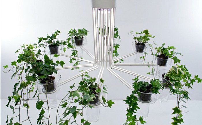 Необязательно придерживаться винтажного стиля, современный тоже будет смотреться великолепно. Всё зависит от модели люстры. Дизайнеры из студии Gumdesign предложили своё видение вазонов, парящих в воздухе.
