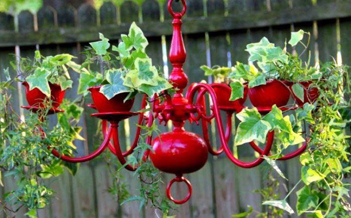 Необычный и креативный подход, позволяющий подарить вторую жизнь люстре, которая либо не вписывается в новый стиль дома, либо сломалась. Теперь она может сослужить новую службу. Понадобится ещё лишь несколько глиняных горшков.