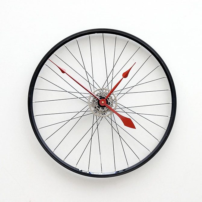 Стильные часы из велосипедного колеса — для тех, кто ценит минимализм.