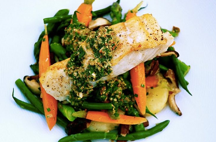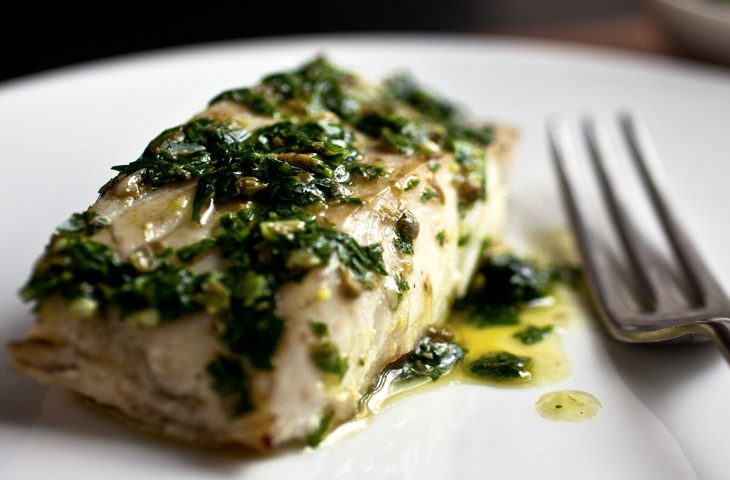 Палтус с соусом на травах и ореховым маслом