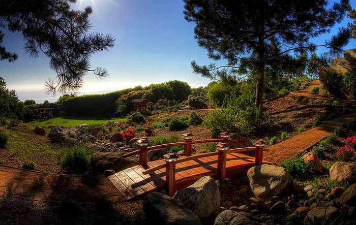 Нет ничего лучше, чем летом обустроиться в красивом внутреннем дворе или саду с пышной зеленью и благоухающими цветами. Для многих неспокойная городская жизнь в условиях стекла и бетона становится утомительной и хочется сменить её на что-то более приятное глазу и душе. Превратить обычный двор в райский уголок поможет оригинальный мостик, его можно построить даже если на территории нет ручья или пруда. Садовые мостики бывают различных размеров и форм. Главное, чтобы он вписывался в общий стиль ландшафта.