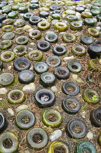 Если вас заботит проблема переработки мусора, вас может заинтересовать эта садовая дорожка, созданная при помощи одних лишь стеклянных бутылок. Конечно, сбор достаточного количества бутылок, необходимых для создания дорожки, займёт некоторое время, но результат того стоит.