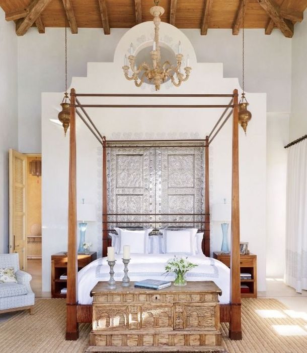 Весьма необычно применять сундук в роли прикроватной тумбы. Помимо того, что это эстетически привлекательно, в самом ларце можно хранить вещи, а сверху на него класть любимые книги. Главное, чтобы сундук не был выше кровати, иначе его использование в таком виде будет весьма неудобным.