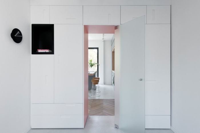 Благодаря скрытому хранению удалось избавиться от шкафов