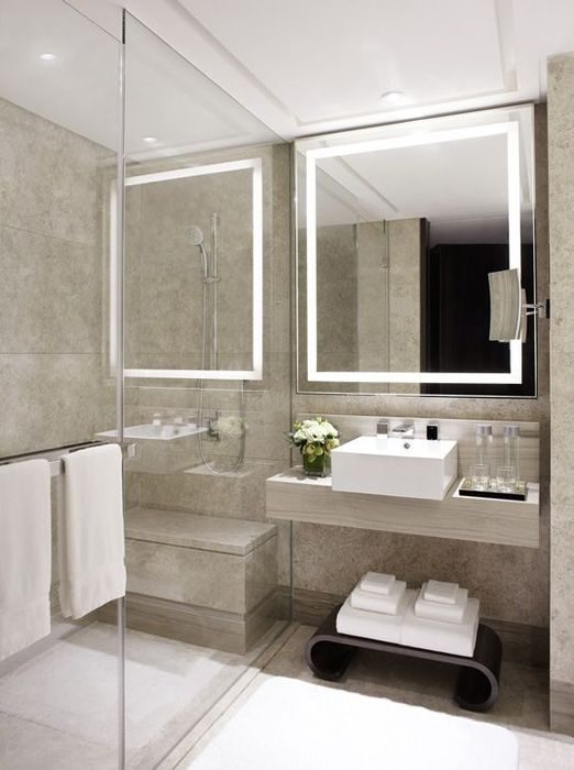 6. Светлая плитка в сочетании со стеклянной перегородкой работают на визуальное расширение пространства